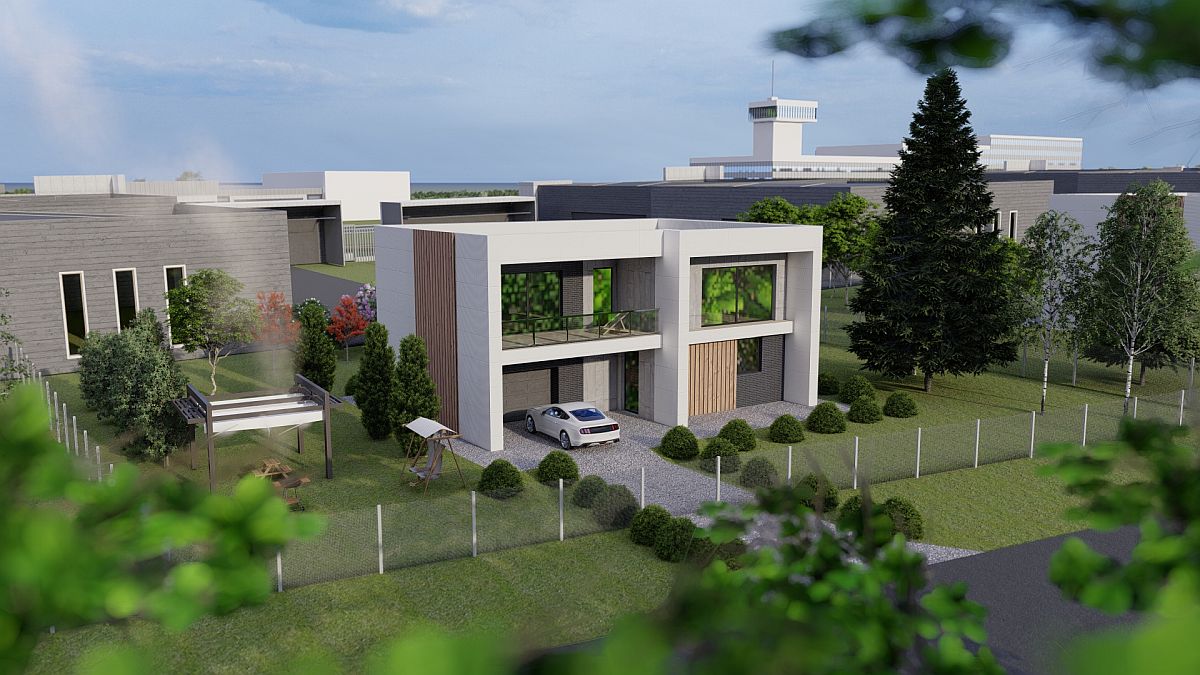 Владельцы самолетов будут комфортно проживать в гостевых домах с ангарами для самолетов.
