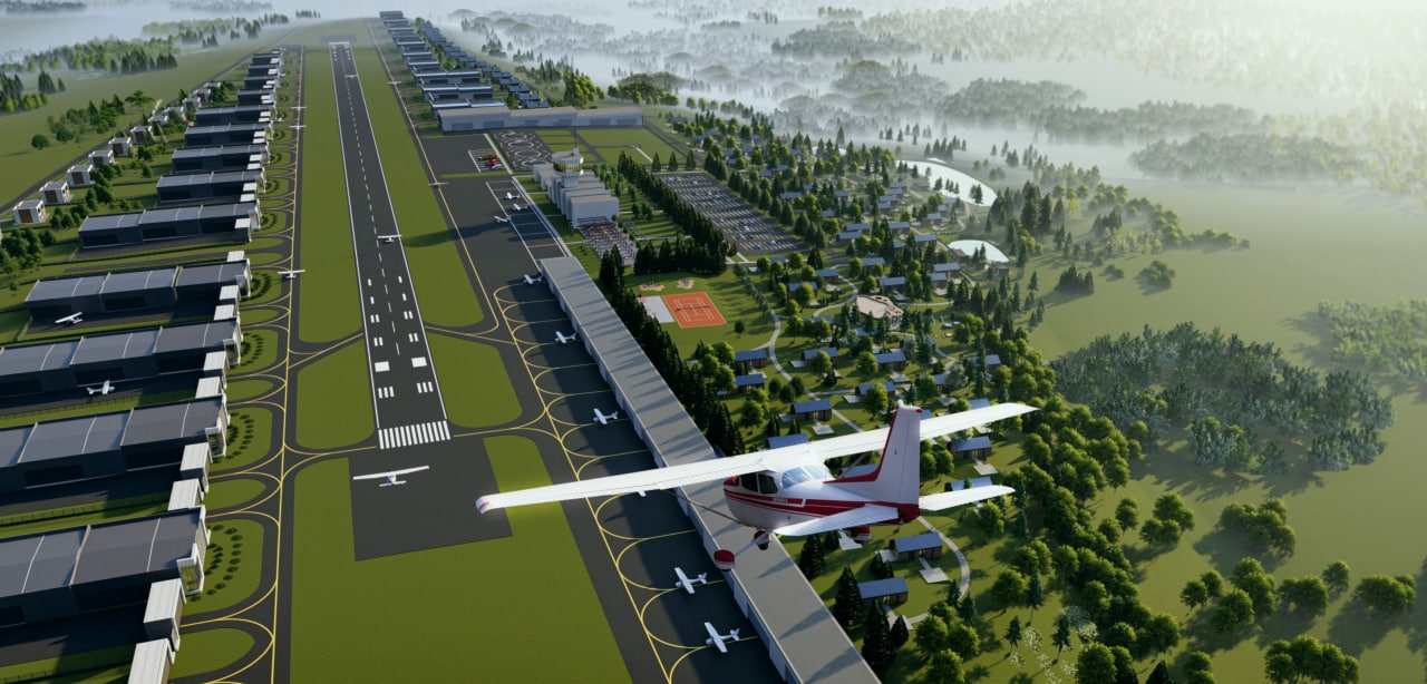 Для увеличения стоимости земли необходимо построить в авиадеревне ВПП, дома с ангарами для самолётов, а также активно вести строительство уютного отеля для гостей.