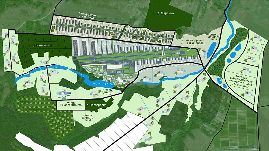 Детально описываем каждую авиа-деревню, как инвестиционный проект с перечнем выполненных работ и всей переписки с администрацией и все согласования.
